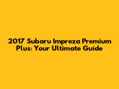2017 Subaru Impreza Premium Plus: A Comprehensive Guide