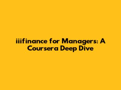 Iiifinance For Managers: A Coursera Deep Dive