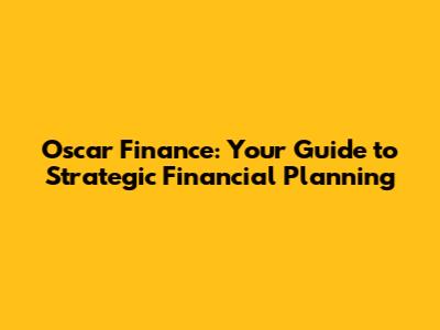 Oscar Finance: Your Guide To Strategic Financial Planning