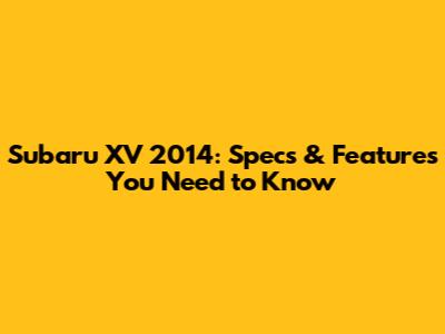 Subaru XV 2014: Specs & Features You Need To Know
